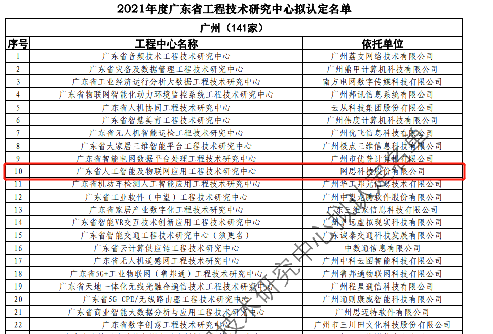 日前,广东省科技厅发布2021年度广东省工程技术研究中心名单。经过层层筛选、专家评审,依托世界杯下注官网-世界杯中国官方网站 建设的“广东省人工智能及物联网应用工程技术研究中心”榜上有名。广东省工程技术研究中心主要依托省内行业、领域具有科技实力的、拥有一定规模以上创新型企业建设,部分依托高校和科研院所组建。工程中心旨在
