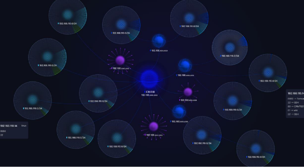 基于资产视角具有强大的“暴露攻击面”安全分析功能,可帮助防守方自动识别资产,实时监测内向外、对发起攻击行为,并识别影子资产,帮助防守方能够快速的掌握网络当前的安全态势和风险状况。